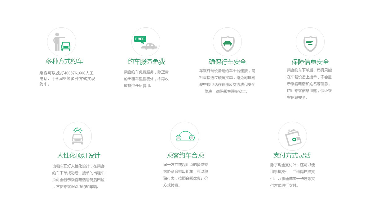 安徽交学教育科技有限公司根据政府传统出租车升级推出的一款巡游出租车约车APP平台。 面向出租车,安安出行改变了传统司机等客和巡游揽客的方式,直接通过车载终端接收乘客订单,节约司机与乘客沟通的时间和成本,最大限度优化出租车的约车流程;面向乘客,安安出行可以实现4008761608电话、手机APP等多种方式实现出租车约车,节约了乘客等待时间,方便快捷出行。